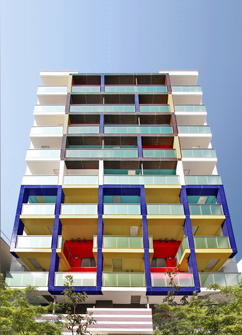 | Comments | Not only the outstanding beauty of its façade attracts all residents; it also provides a brilliant 100㎡-wide guest house on the top floor. By positioning the pole in the center of the building, spectacular spaciousness and scenery of Osaka came into realization. In addition, we have adopted numerous wonderful ideas, such as providing maisonette rooms which can also be used as office spaces, and ample storages in all units. |